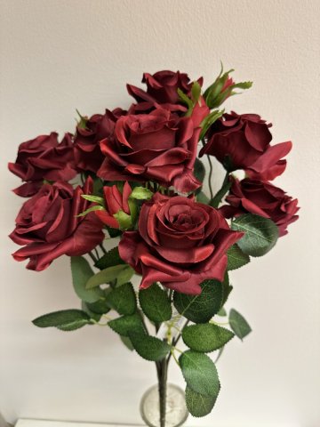 46CM OPEN ROSE BOUQUET RED