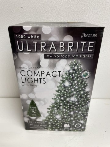 1000 LED LIGHTSMULTI FUNCTIONCOMPACT LIGHTS/TIMERCOLOUR - WHITE25 METRE LIT LENGTH3M LEAD LENGTHIDEAL FOR A 7FT TREE
