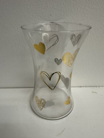 20CM X 12CM HANDTIED VASE/GOLD HEARTS